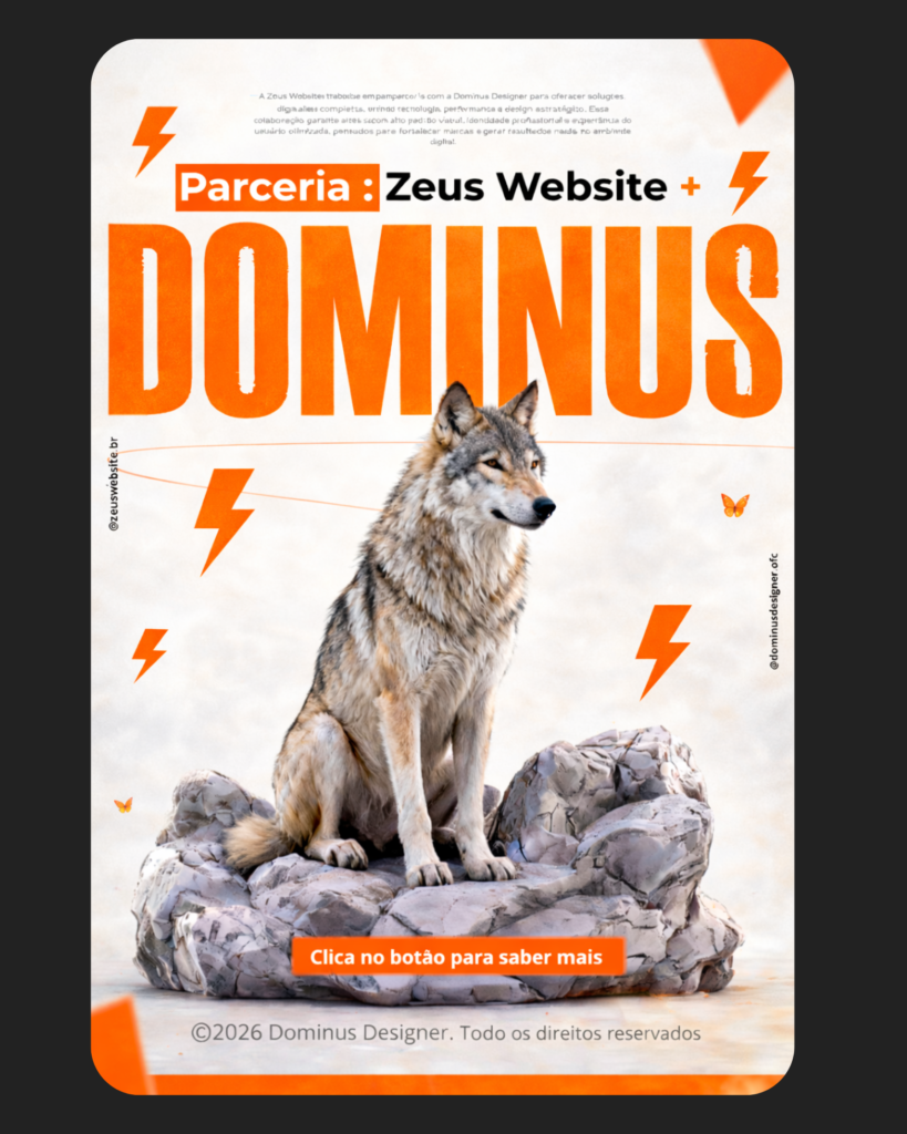 A Zeus Websites trabalha em parceria com a Dominus Designer para oferecer soluções digitais completas, unindo tecnologia, performance e design estratégico. Essa colaboração garante sites com alto padrão visual, identidade profissional e experiência do usuário otimizada, pensados para fortalecer marcas e gerar resultados reais no ambiente digital.